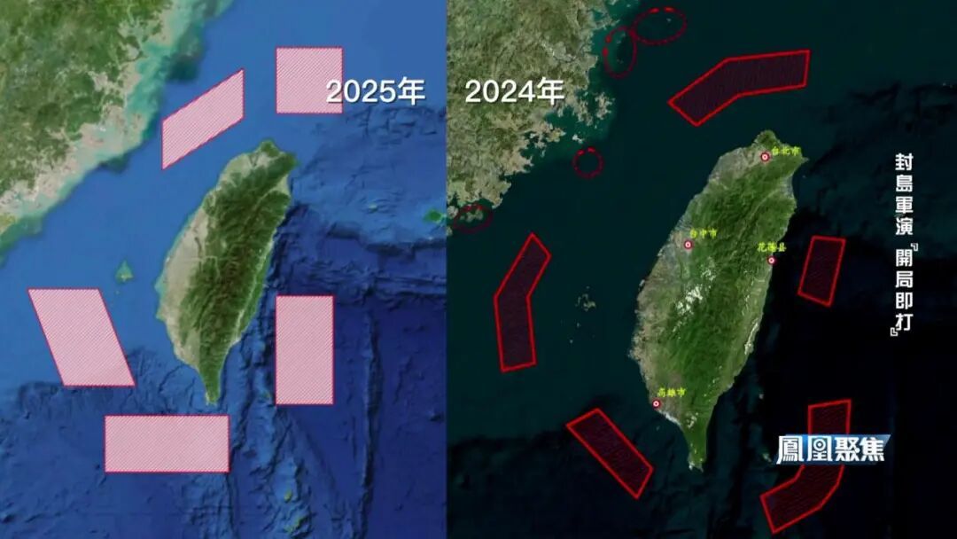 从2022年到2025年,四年间,解放军的演习力度越来越大,对台岛箍得越来越紧。